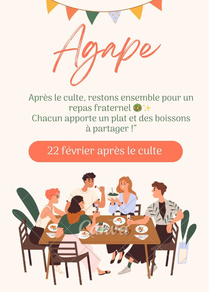Quel beau moment ensemble! Ce dimanche 22 février après le culte, nous avons partagé une agape. Parce que l’Eglise ce n’est pas juste un lieu c’est une famille !